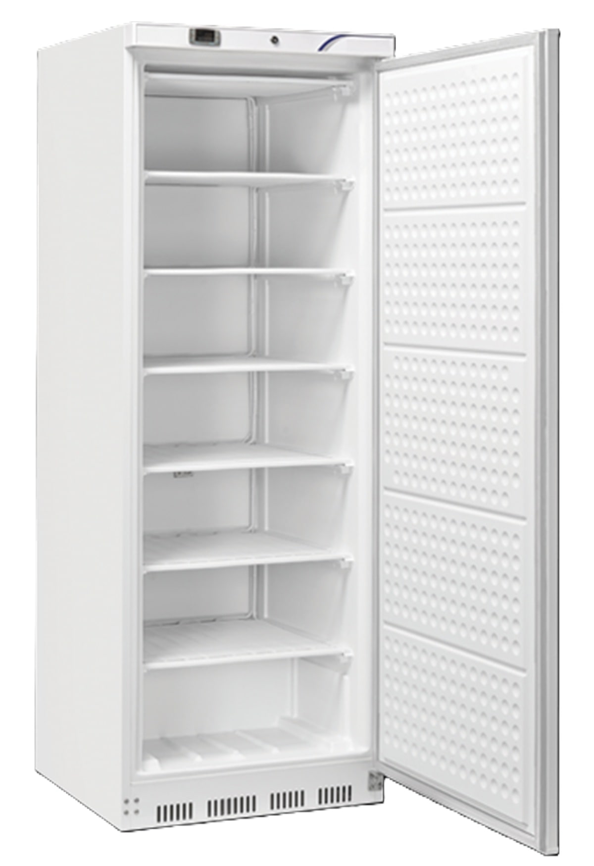Este congelador vertical para hostelería de 400 litros ofrece un rendimiento profesional y una excelente capacidad de conservación gracias a su sistema de refrigeración estática con 6 estantes evaporadores fijos. Fabricado con carcasa blanca e interior termoformado ABS, garantiza durabilidad, higiene y máxima resistencia en entornos de uso intensivo.